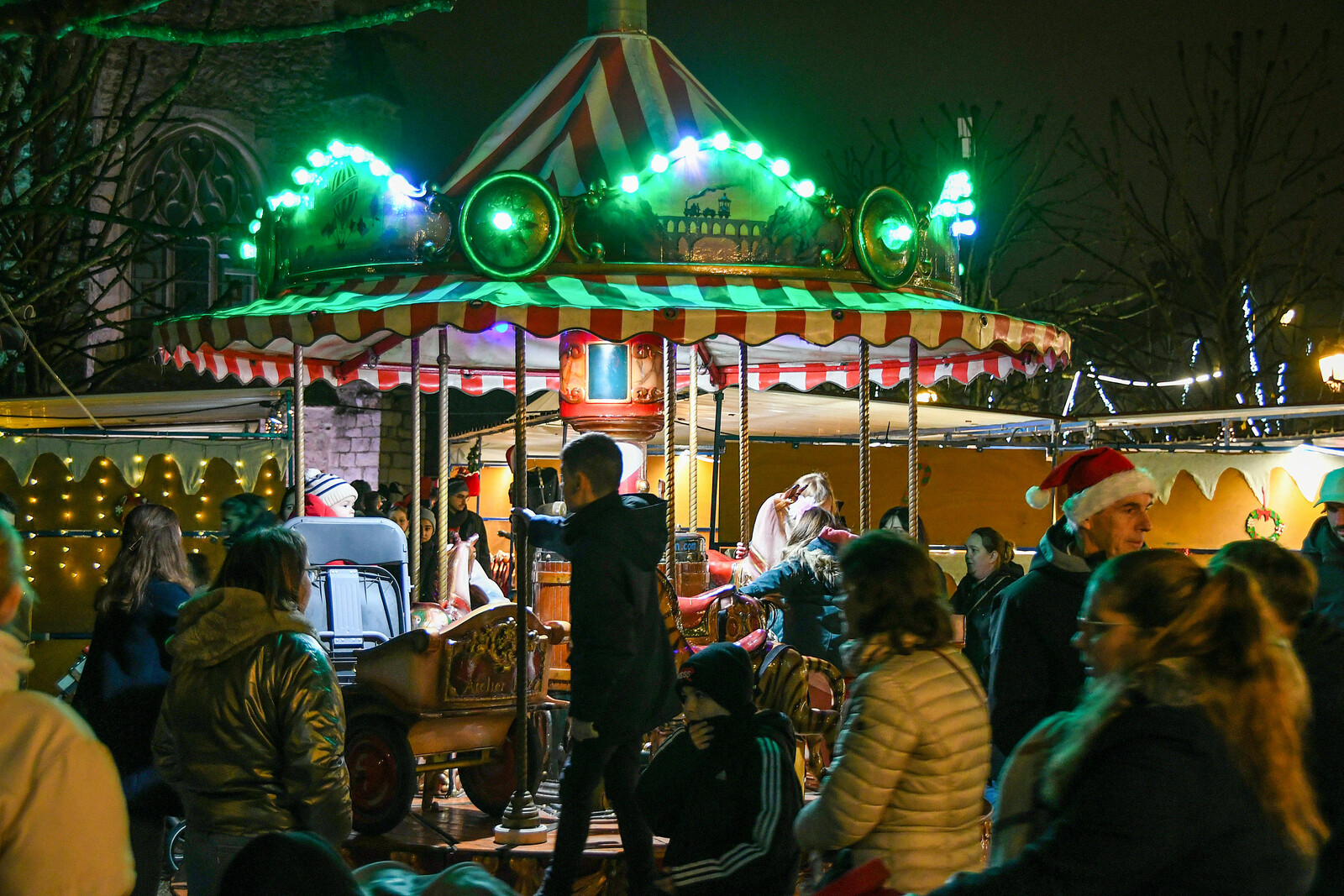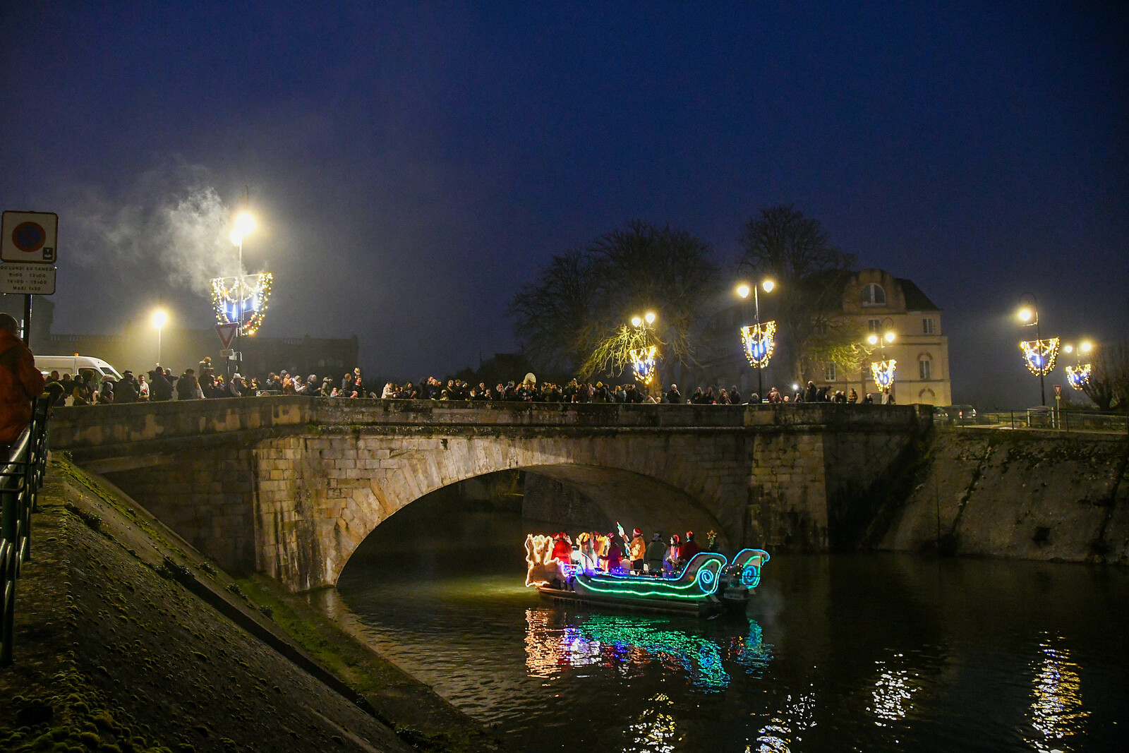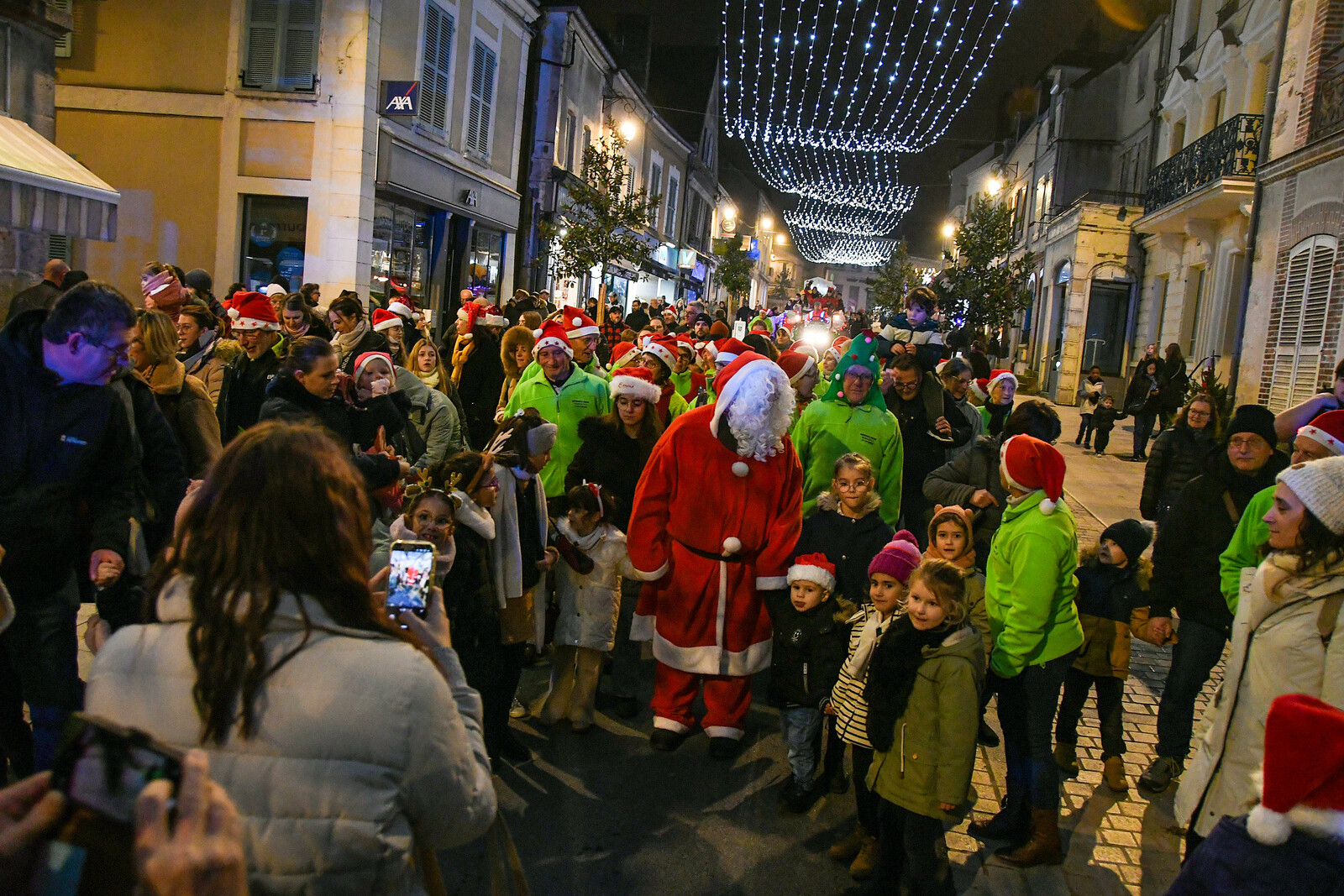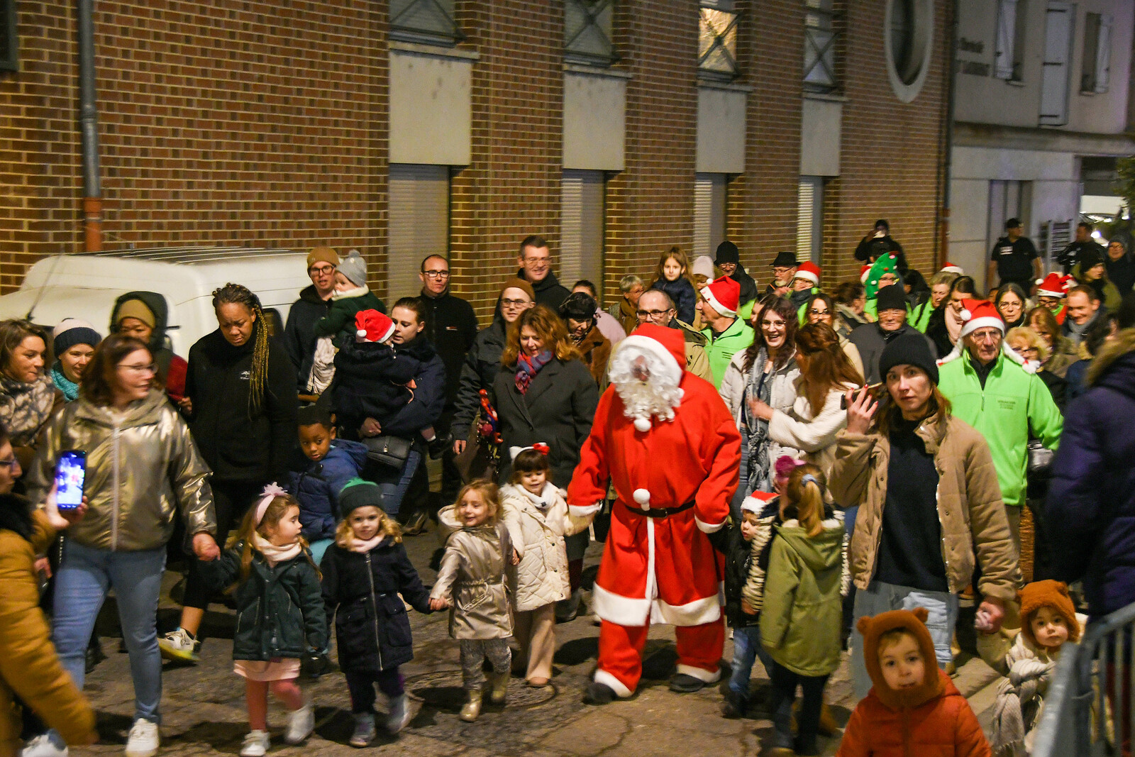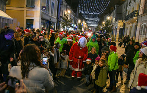 Après la distribution de friandises aux babys, le père Noel est arrivé en bateau et a deambulé jusqu'au marché de Noel organisé par l'Espérance Gym, pour faire des photos.