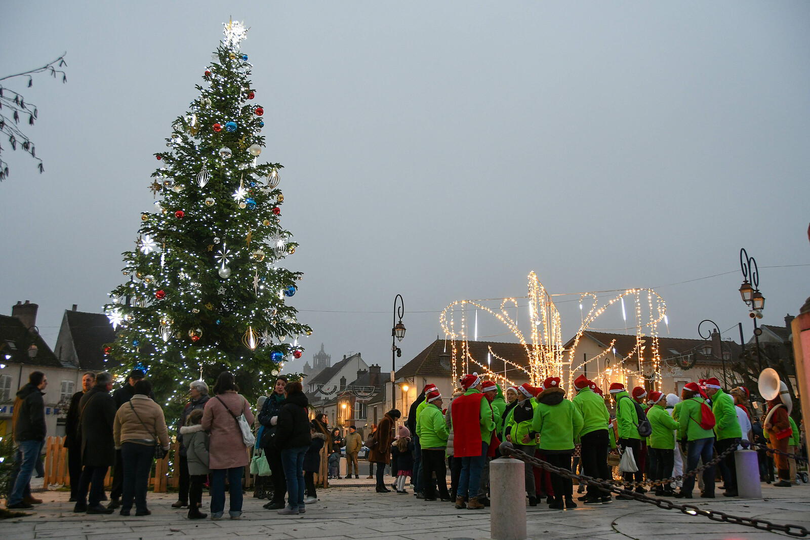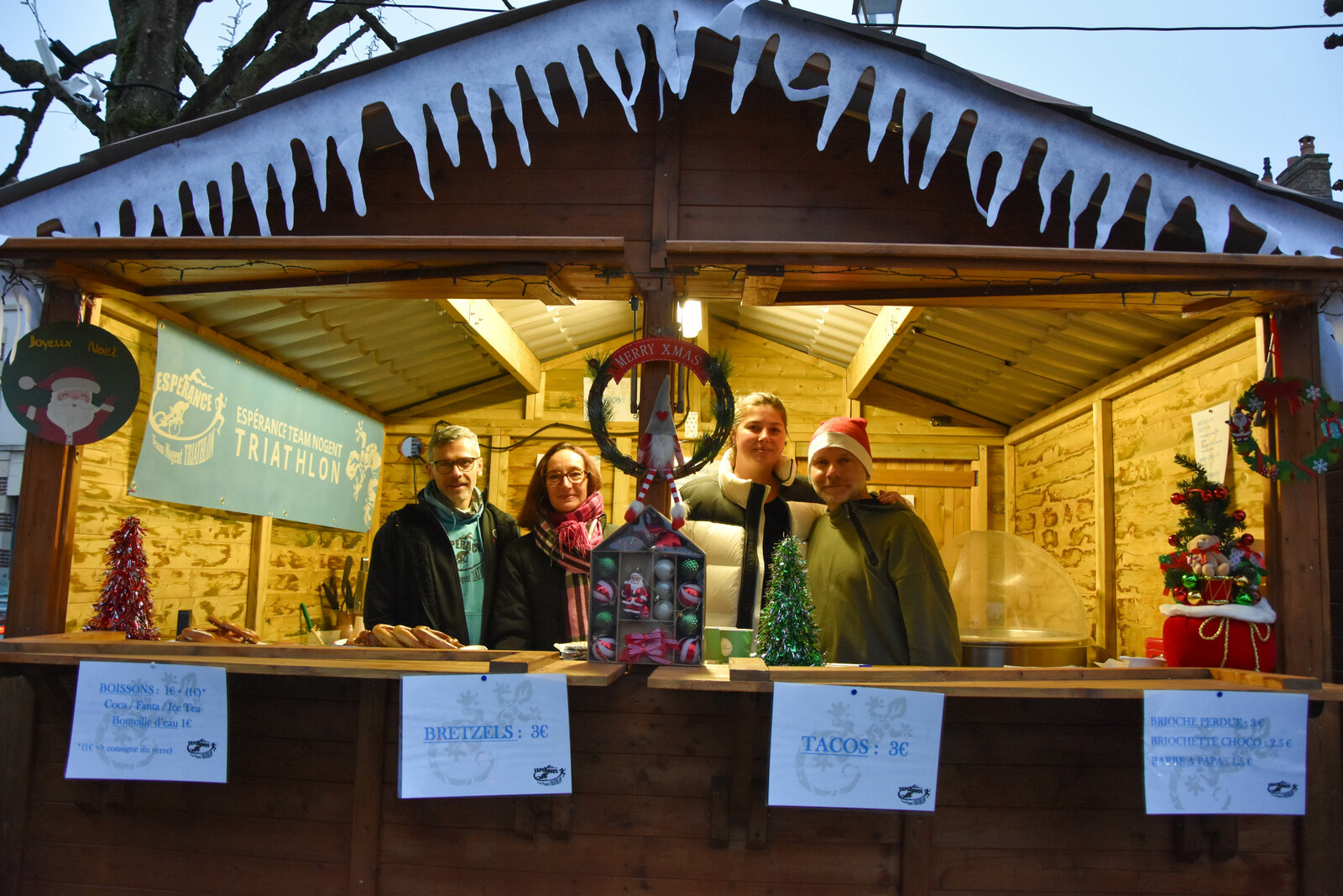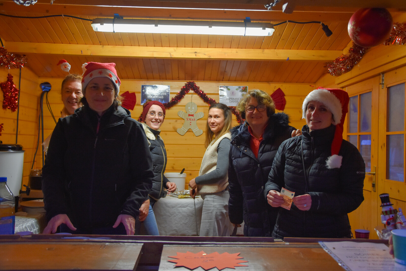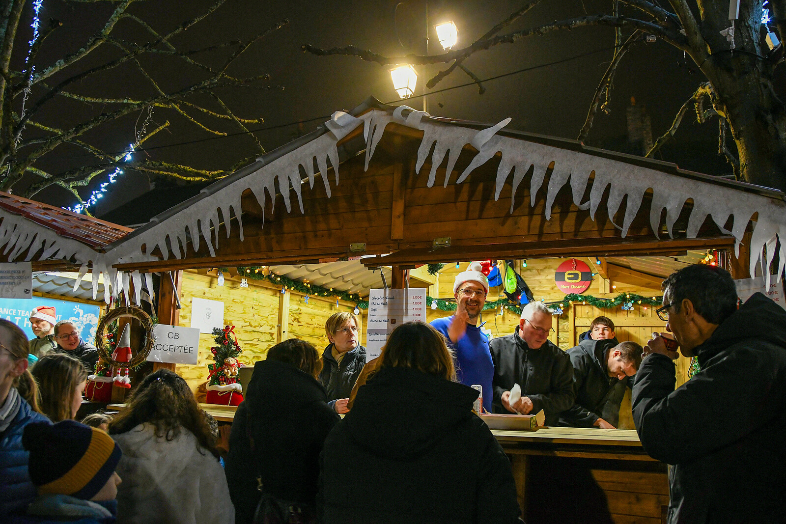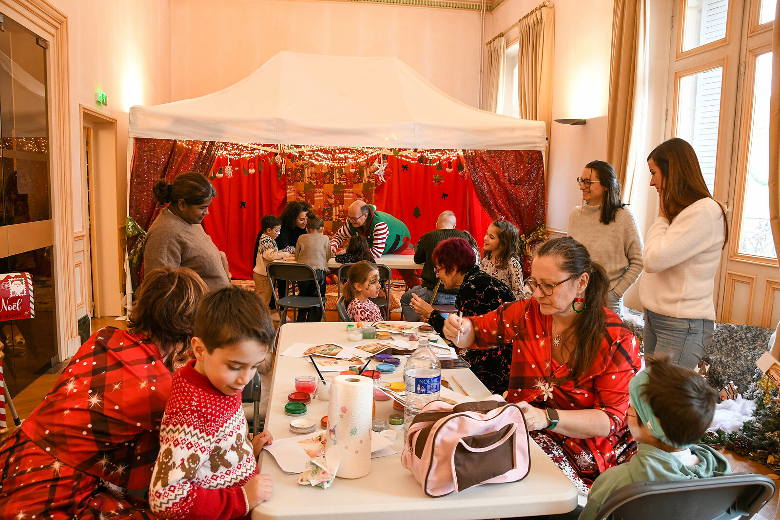 Après la distribution de friandises aux babys, le père Noel est arrivé en bateau et a deambulé jusqu'au marché de Noel organisé par l'Espérance Gym, pour faire des photos.