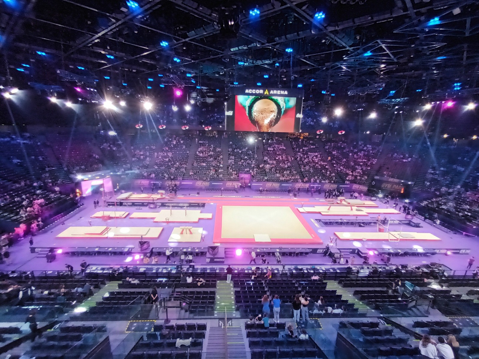 L'Espérance gym est dans les gradins de l'accor Arena pour les internationaux de gym 2025 à Bercy.