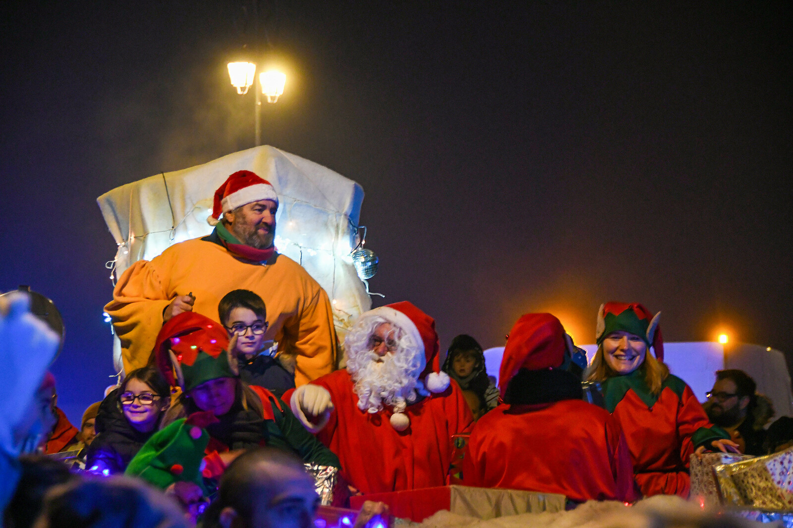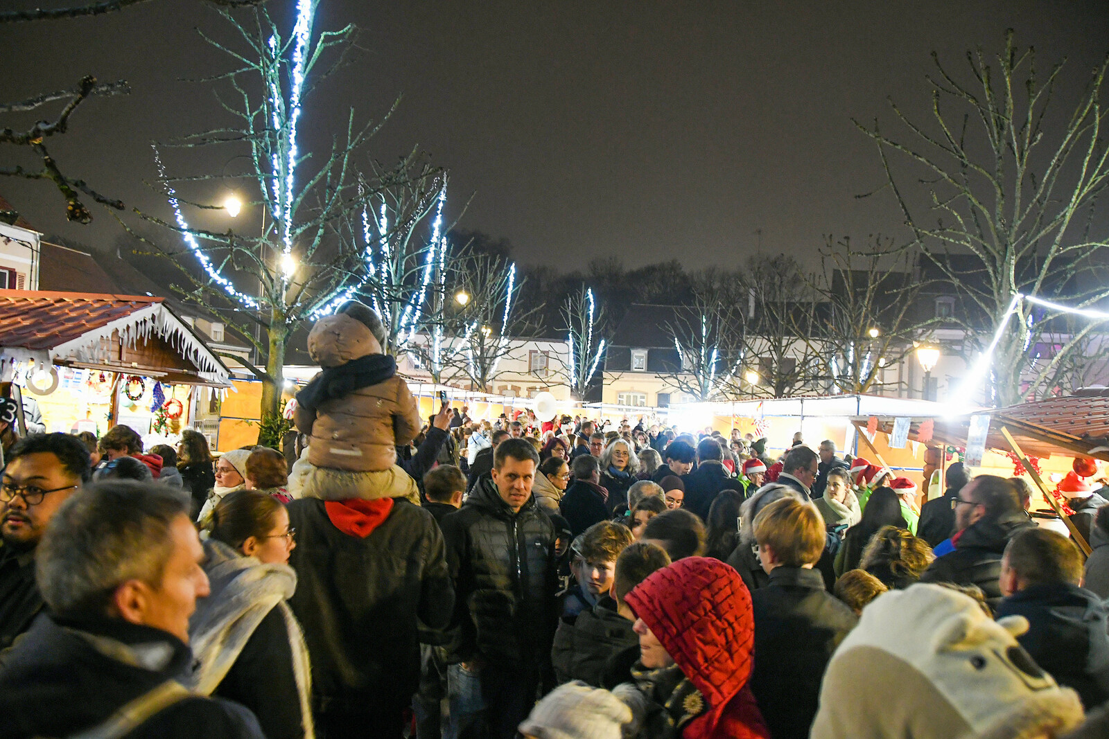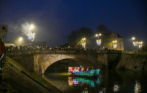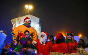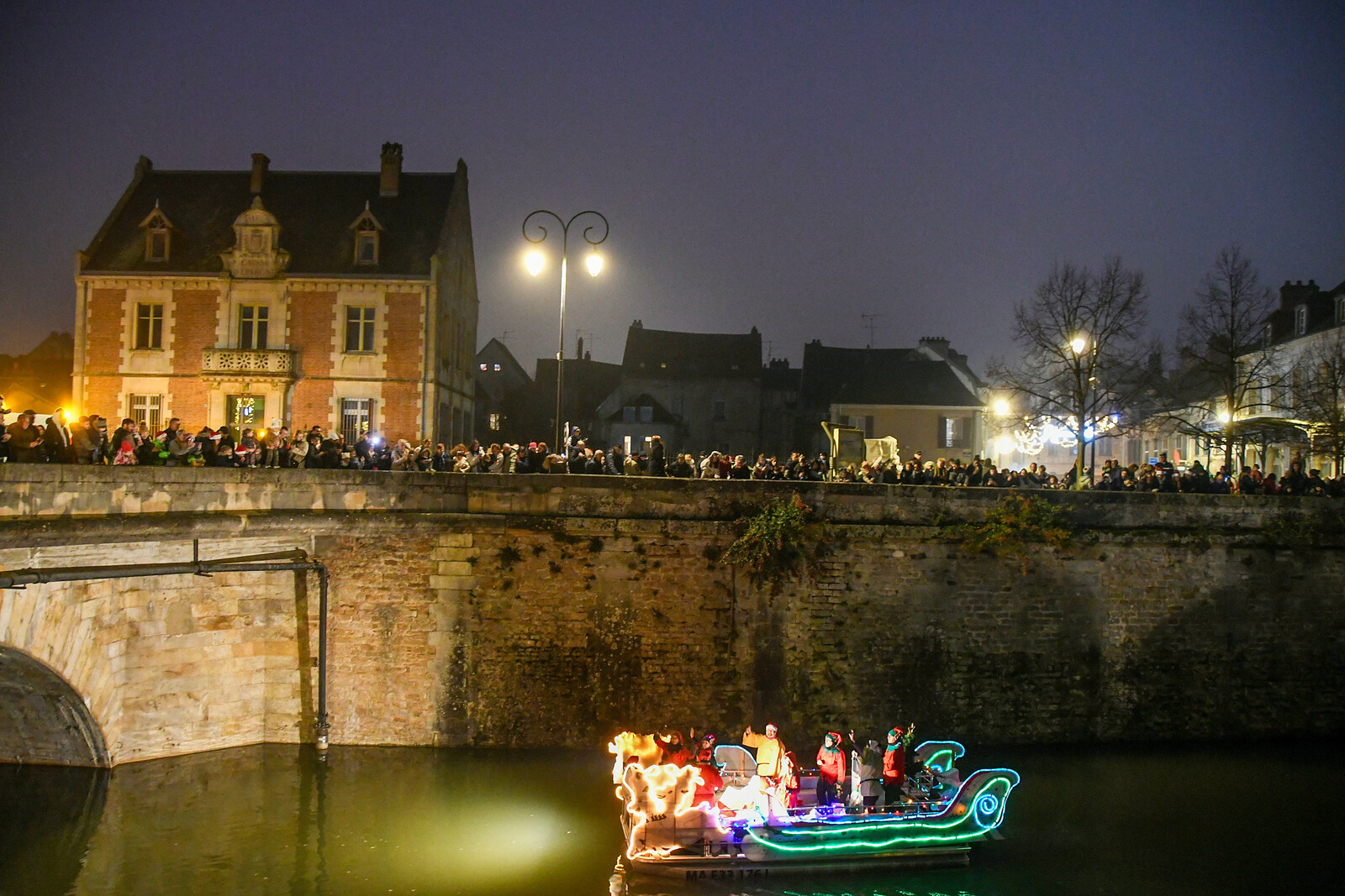 Après la distribution de friandises aux babys, le père Noel est arrivé en bateau et a deambulé jusqu'au marché de Noel organisé par l'Espérance Gym, pour faire des photos.