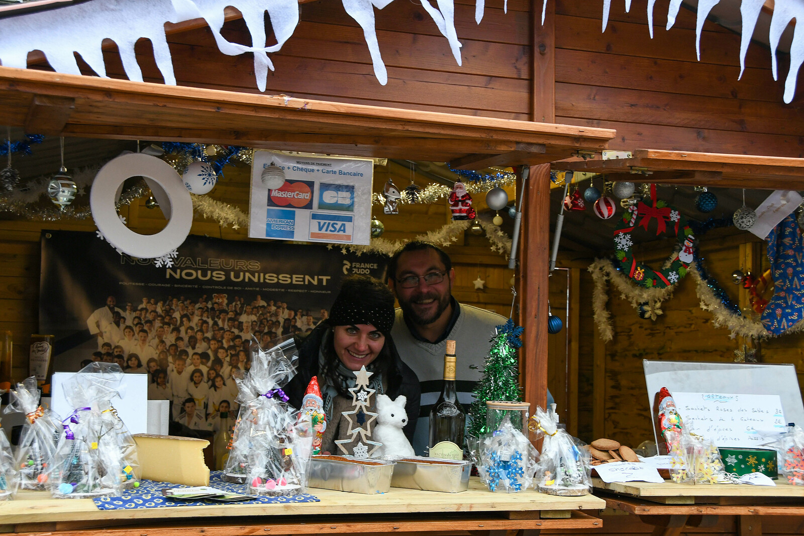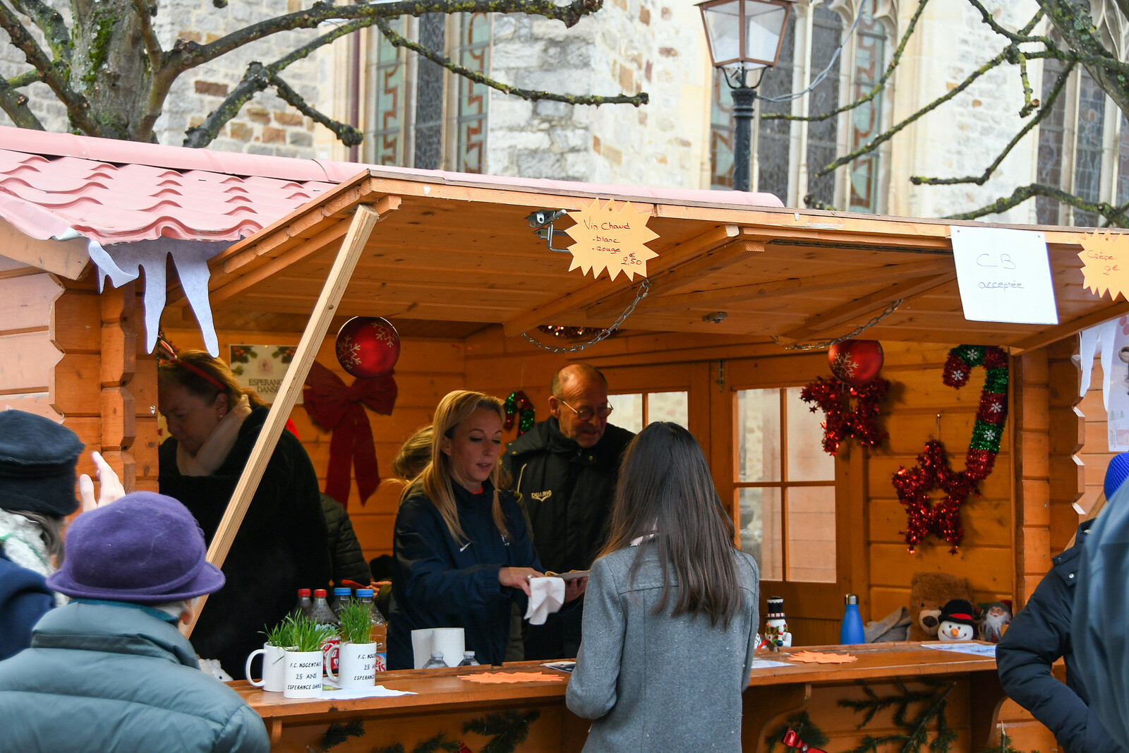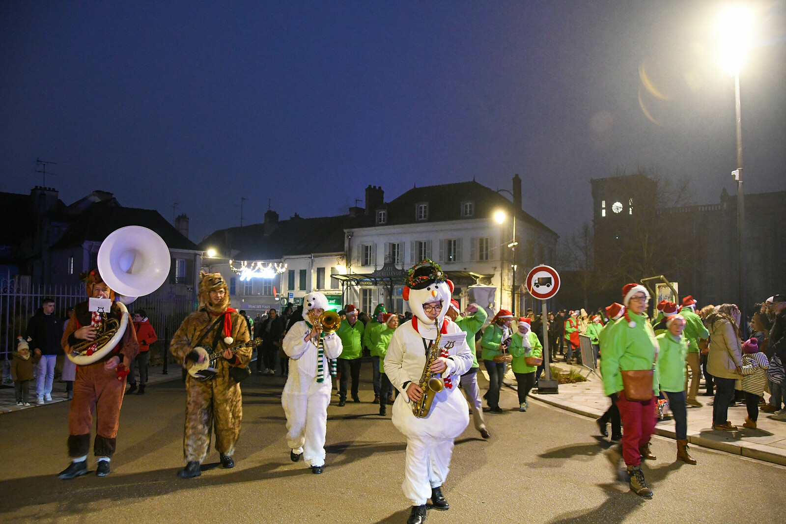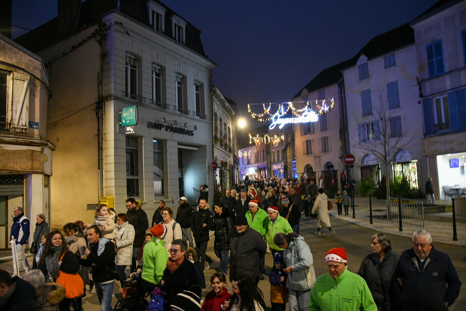 Après la distribution de friandises aux babys, le père Noel est arrivé en bateau et a deambulé jusqu'au marché de Noel organisé par l'Espérance Gym, pour faire des photos.